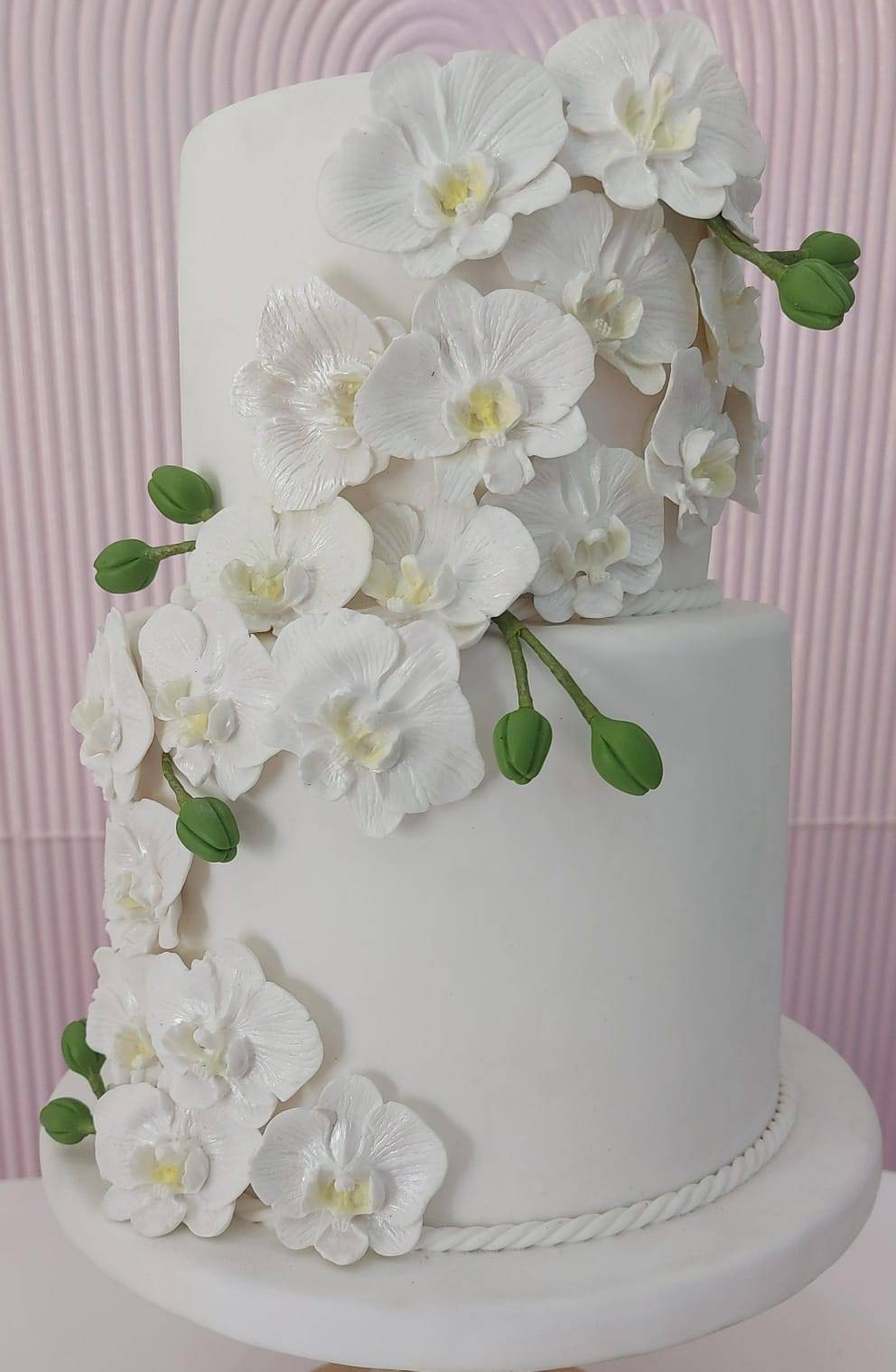 bolo branco flores orquídea